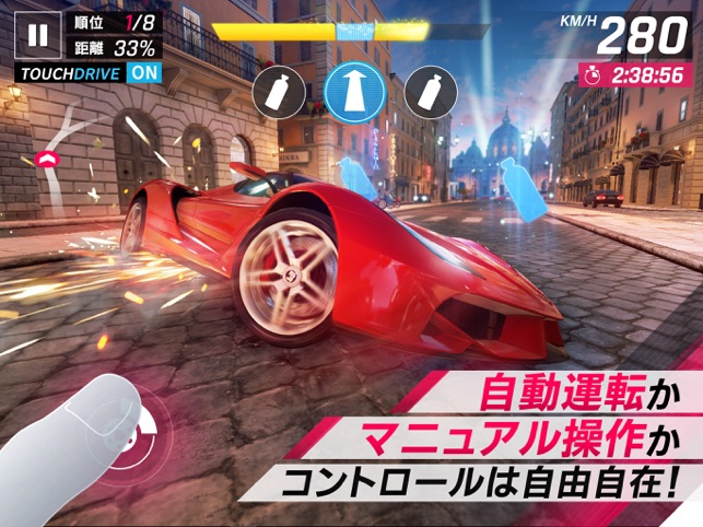 ニトロをチャージしてニトロパルスを発動しスピードアップ!ブレーキをダブルタップで360スピンをキメてライバルたちをぶっ飛ばせ!▼コンソール並みのクオリティが手のひらに