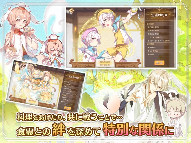 ここは、人類と食霊が共存する世界——ティアラ。ある日突然、世界を滅ぼそうとする堕神が現れました。料理御侍としてレストランを経営しているプレイヤーは、食物から生まれた霊体——食霊と契約を結び、ティアラを冒険しながら、堕神と戦っていきます。ストーリーが進むにつれ、闇に隠されている真実も徐々に明らかに……。【戦闘】