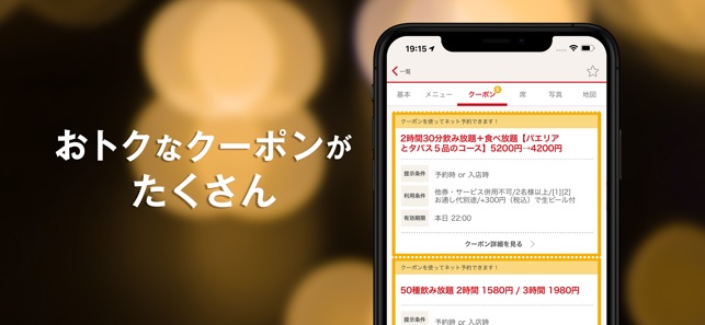 ※一部クーポンは、予約時にご提示が必要な場合もあります。例えば:『ホットペッパーってお得なクーポンがいっぱいあるって聞いたんだけど、せっかく幹事やるならクーポンで安くお得に済ませたいなぁ。』