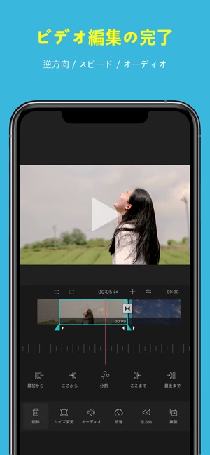 – 切る、手入れする、倍速調節、逆方向再生、複製等多様な動画編集機能を提供します。