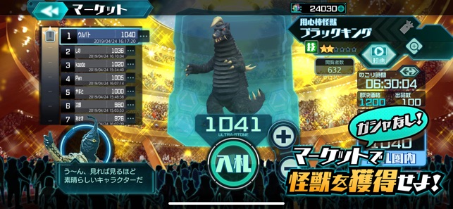 マーケットでは入札したウルトラストーン数が出品数以上のランキングに入れば、怪獣を獲得する権利を得ることができます。■バトルはシミュレーション!ウルトラマンとも戦える!?