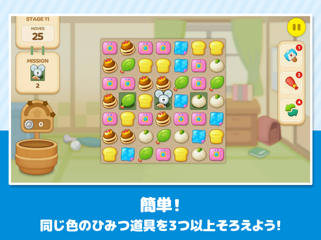 同じ色のひみつ道具のブロックをそろえて消す、簡単パズル!