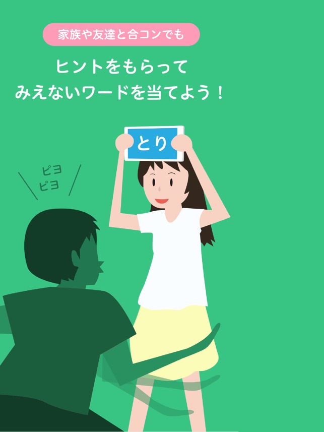 「おしえて ポン !」はアプリの画面に表示される文字を当てる、2人以上で遊ぶゲームです!家族・友達・恋人と子供・大人・おじいちゃん・おばあちゃん年齢関係なく遊びましょう。